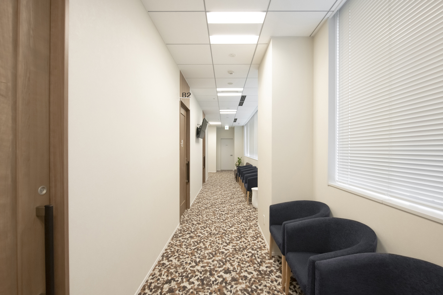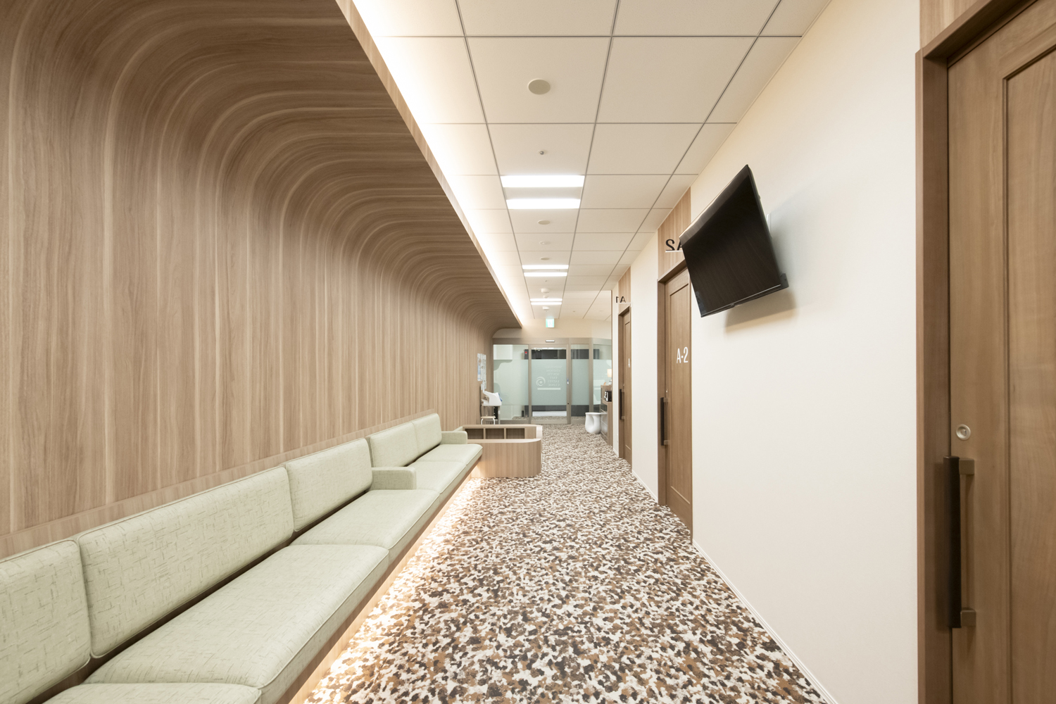受付前の待合スペースのほかに、診察室の前にも中待合を設けております。