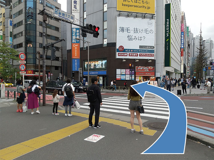 都営新宿駅6番出口から地上に出たら、右折してください。
